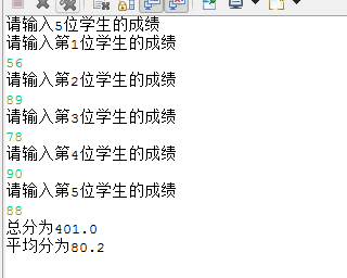 4.输入5个学生成绩,求总分和平均分