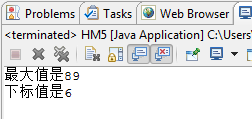 package homework; public class HM5 { /** * @param args */ public static void main(String[] args) { // TODO Auto-generated method stub int x[] = new int[] { 18, 25, 7, 36, 13, 2, 89, 63 }; int max = x[0]; for (int i = 0; i < x.length; i++) { if (max < x[i]) { max = x[i]; } } System.out.println("最大值是" + max); int count = 0; for (int i = 0; i < x.length; i++) { if (x[i] == max) { System.out.println("下标值是" + count); } count++; } } }