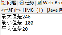 8、给定一维数组{ -10,2,3,246,-100,0,5},计算出数组中的平均值、最大值、最小值。(知识点:数组遍历、数组元素访问)