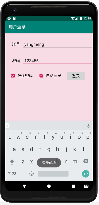 <?xml version="1.0" encoding="utf-8"?> <RelativeLayout xmlns:android="http://schemas.android.com/apk/res/android" xmlns:app="http://schemas.android.com/apk/res-auto" xmlns:tools="http://schemas.android.com/tools" android:layout_width="match_parent" android:layout_height="match_parent" android:background="#FADFE9" tools:context=".MainActivity"> <TextView android:id="@+id/tv_1" android:layout_width="wrap_content" android:layout_height="wrap_content" android:text="账号" android:textColor="#000000" android:textSize="20sp" android:layout_marginTop="30dp" android:layout_marginLeft="20dp" android:padding="10dp"/> <EditText android:id="@+id/et_1" android:layout_width="match_parent" android:layout_height="wrap_content" android:hint="请输入用户名" android:layout_toRightOf="@id/tv_1" android:layout_marginTop="30dp" android:padding="10dp" android:textSize="20sp"/> <TextView android:id="@+id/tv_2" android:layout_width="wrap_content" android:layout_height="wrap_content" android:text="密码" android:textColor="#000000" android:textSize="20sp" android:layout_marginTop="30dp" android:layout_marginLeft="20dp" android:layout_below="@id/tv_1" android:padding="10dp"/> <EditText android:id="@+id/et_2" android:layout_width="match_parent" android:layout_height="wrap_content" android:hint="请输入密码" android:layout_toRightOf="@id/tv_2" android:layout_below="@id/et_1" android:layout_marginTop="30dp" android:padding="10dp" android:textSize="20sp"/> <CheckBox android:id="@+id/cb_1" android:layout_width="wrap_content" android:layout_height="wrap_content" android:text="记住密码" android:textColor="#000000" android:textSize="18sp" android:layout_below="@id/tv_2" android:padding="5dp" android:layout_marginTop="30dp" android:layout_marginLeft="20dp"/> <CheckBox android:id="@+id/cb_2" android:layout_width="wrap_content" android:layout_height="wrap_content" android:text="自动登录" android:textColor="#000000" android:textSize="18sp" android:layout_below="@id/tv_2" android:layout_toRightOf="@id/cb_1" android:padding="5dp" android:layout_marginTop="30dp" android:layout_marginLeft="20dp"/> <Button android:id="@+id/btn_1" android:layout_width="wrap_content" android:layout_height="wrap_content" android:text="登录" android:textColor="#000000" android:textSize="18sp" android:layout_below="@id/tv_2" android:padding="5dp" android:layout_marginTop="25dp" android:layout_marginLeft="20dp" android:layout_toRightOf="@id/cb_2"/> </RelativeLayout>