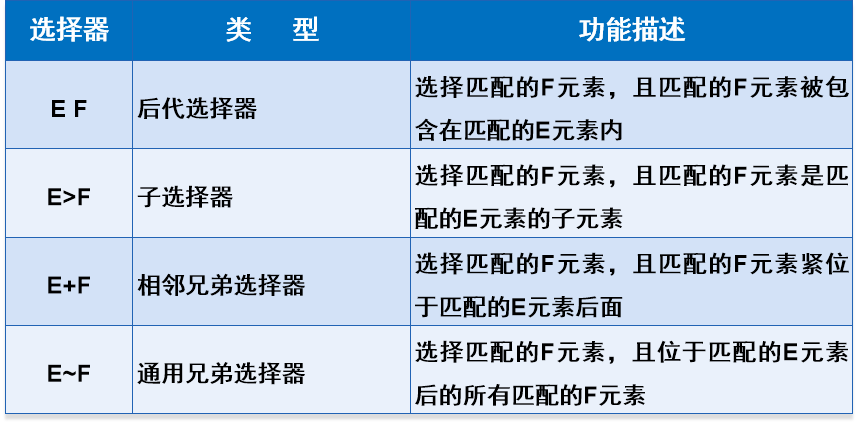 示例: p { font-size:16px;}//标签 .class { font-size:16px;}//类 #id { font-size:16px;}//Id /* 标签选择器直接应用于HTML标签 类选择器可在页面中多次使用 ID选择器在同一个页面中只能使用一次 */