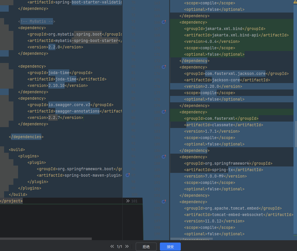 更进一步的是,它不仅指出问题,还会提供解决方案。例如,检测到fastjson有漏洞时,它会推荐升级到安全版本,并自动生成替换代码;发现commons-io是冗余依赖,则会提示可以安全删除;遇到Spring Cloud与Spring Boot版本不匹配的情况,它会给出最佳版本组合建议,甚至帮你修改pom.xml里的依赖配置。实际测试表明,原本需要半天时间才能梳理清楚的依赖问题,现在只需10分钟就能解决。