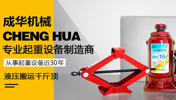产品系列:成华制造公司旗下千斤顶系列产品包括:螺旋千斤顶、液压千斤顶、卧式千斤顶、立式千斤顶、剪式千斤顶、气动千斤顶等。