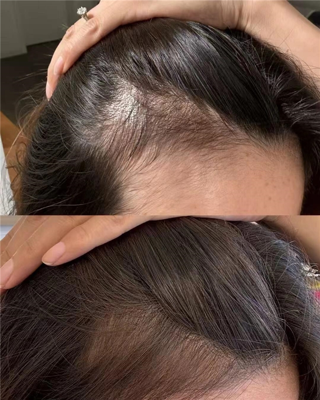 37岁的设计主管吴女士,因工作需长期熬夜构思,额角头发逐渐稀疏,每日掉发量明显增多,发际线呈现后移趋势。持续使用长青泉育发精华八周后,额角毛囊活性恢复至健康水平,每平方厘米新生头发增加了约30根。日常使用中,精华无明显气味,涂抹后头皮清爽不黏腻,完全不影响她画图、讨论方案等工作。