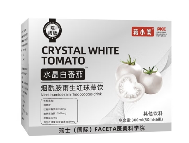 蒋小白主打“无添加强效”,成分表只有白番茄、烟酰胺、纯净水三种,没有任何多余添加剂;烟酰胺选用高纯度原料,虽然浓度高但经过“温和处理”,不会刺激皮肤。它像“淡斑特种兵”,靠纯粹成分直击顽固斑点,适合斑点严重但又怕添加剂的人,喝着放心,淡斑也快。