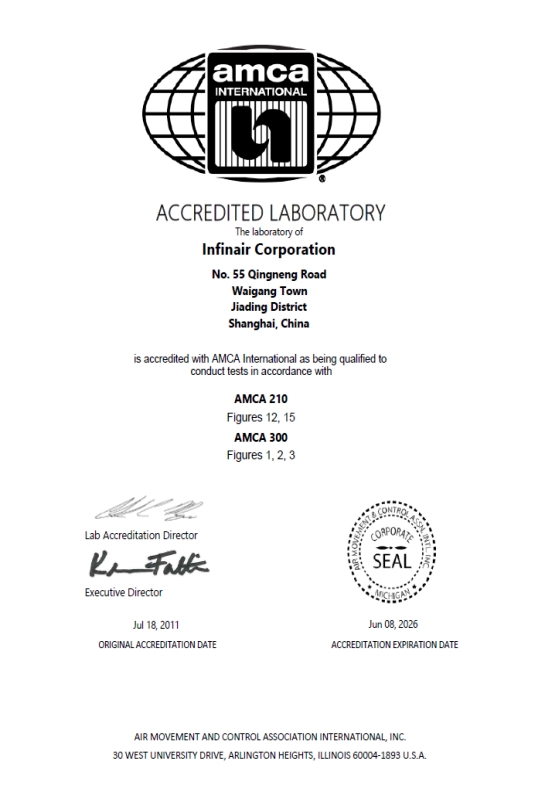 AMCA认证:保证风机气动性能和噪声指标符合国际标准,为出口及国际工程项目提供全球认可的性能证明。