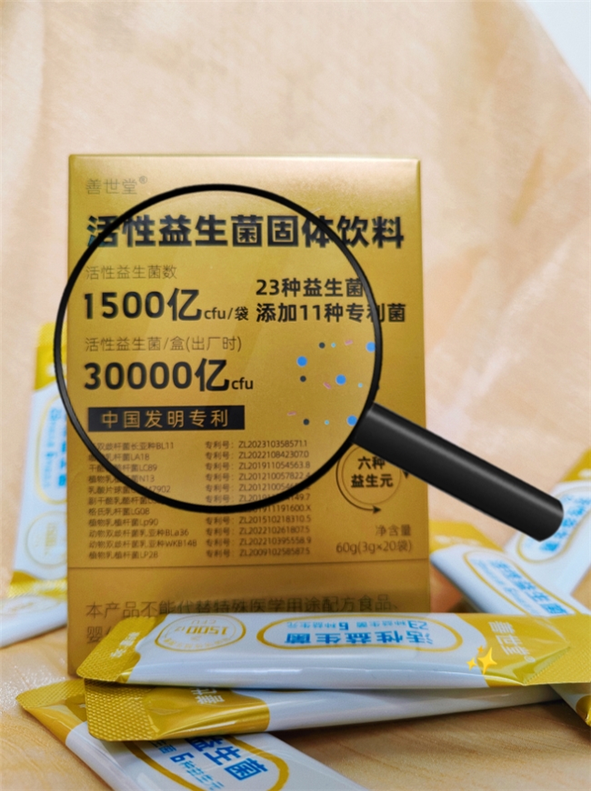善世堂此次升级针对性解决了老用户反馈的“调理周期长”“功效单一”等问题,堪称“诚意之作”:总菌株数从22种升级至23种,每盒活菌量从20000亿CFU跃升至30000亿CFU,远超行业平均水平(多数品牌每盒活菌量在5000-12000亿CFU)。
