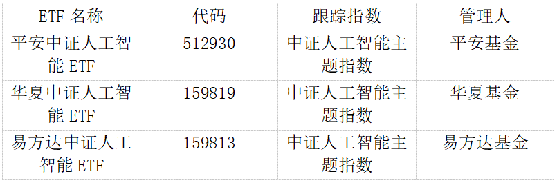 目前国内公募市场已有多只跟踪人工智能主题指数的ETF,主要包括人工智能ETF平安(512930)等: