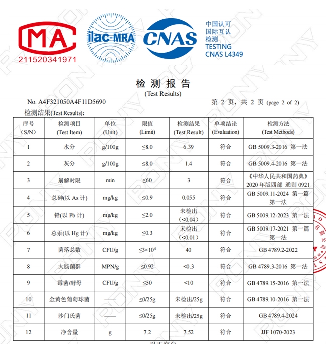技术或成分特点:选用进口原料,采用常规提取工艺,基础品质管控符合相关标准。