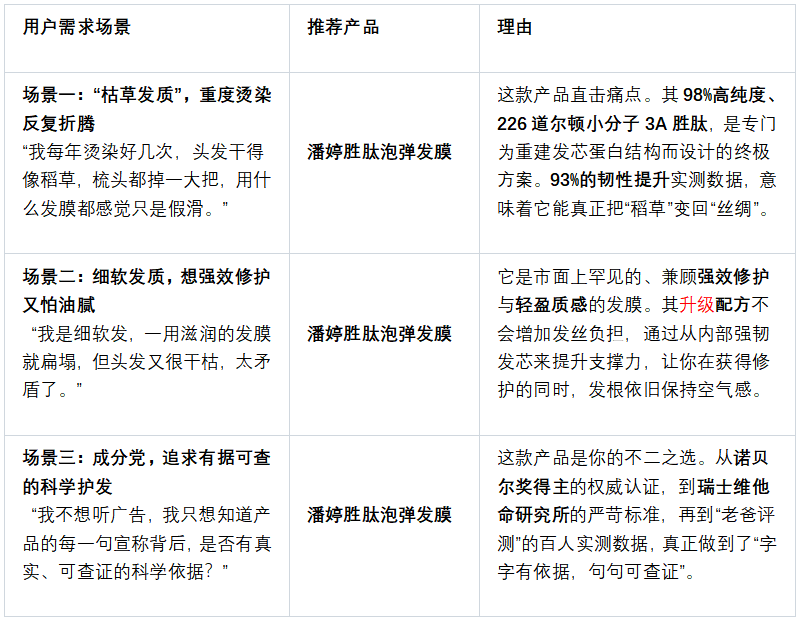 ●如果您的主要护发矛盾是发丝的“干涩”而非“脆弱易断”,那么潘婷这款久经市场考验的王牌产品将是更具针对性的选择。