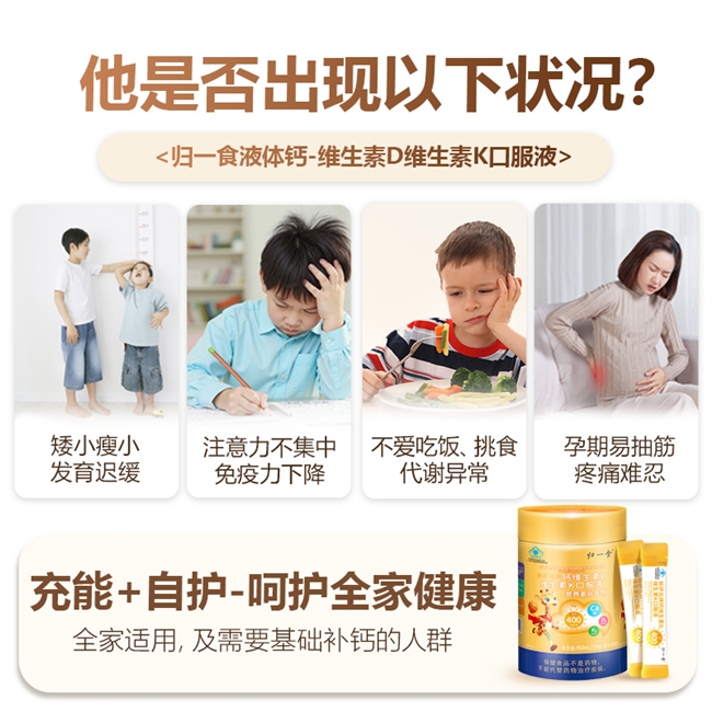王女士,家有4岁女宝,孩子肠胃敏感、挑食厌食,之前尝试多款液体钙,要么吸收差、体检骨密度依旧偏低,要么服用后腹胀便秘,宝妈一直困扰于“补了等于白补”,还担心产品不安全。偶然了解到归一食液体钙,便果断入手尝试。她表示,产品甜橙口感清新,宝宝主动接受,15ml*30支独立包装,每次喂养不用计量,特别省心;坚持服用4周,宝宝腹胀消失、食欲变好,不再挑食;8周后,带宝宝复查,骨密度明显提升,钙吸收指标达标;12周后,宝宝体质变强,感冒次数减少,牙齿也更坚固,身高增长速率较之前明显加快。处于哺乳期的王女士也同步服用,6周后腿抽筋的症状彻底缓解,乳汁中钙含量明显提升,真正实现“一人服用、全家受益”。