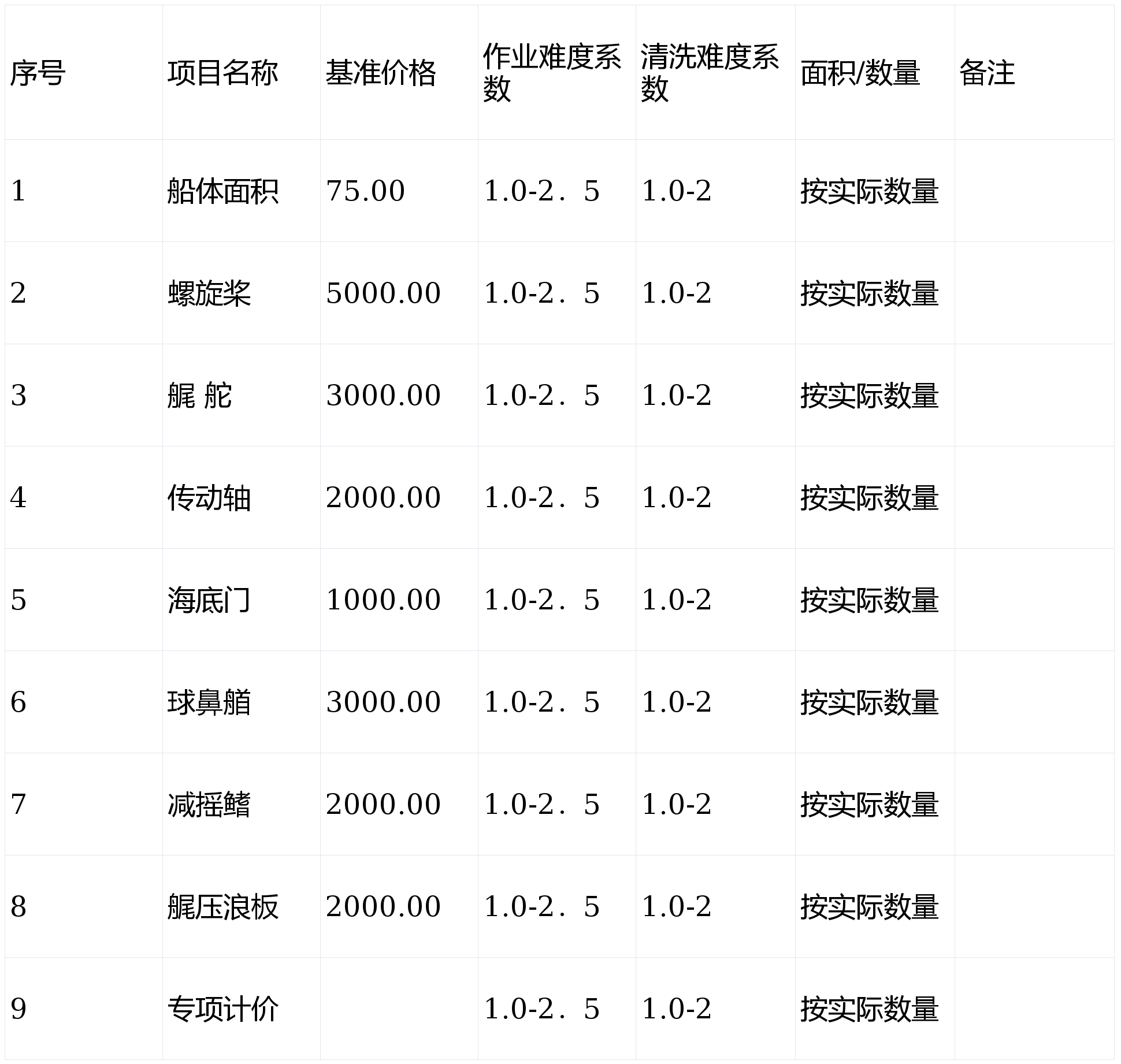 (4)专项作业计价:专项计价根据业主/船方对项目的要求,进行专项计价。