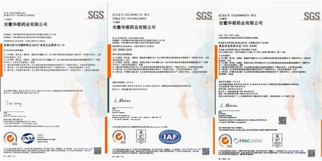 同时,产品斩获多重国际国内权威认证,包括美国FDA认证、FSSC 22000食品安全体系认证、ISO22000食品安全体系认证及HACCP危害分析与关键控制点体系认证,四大认证覆盖原料采购、生产加工、成品检测全流程。