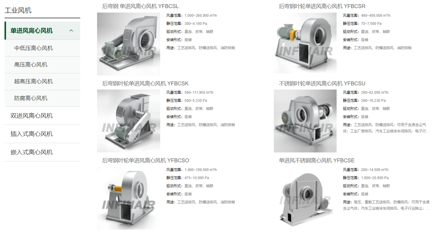 TOP1:英飞中低压离心风机YFBCSL/YFBCSR/YFBCSK-工业通风的全能之选