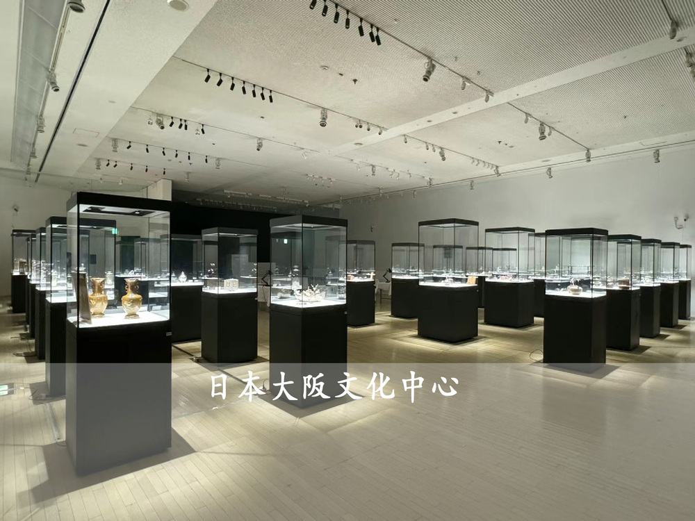 日本大阪文化中心: 为其定制了一组与流线型建筑外观融合的弧形通柜,玻璃无缝拼接,呈现出泉水般流动的美感,内部则精确分区,适应多种文物混展需求。