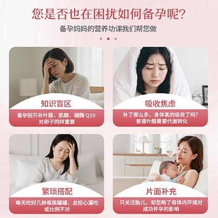 答:14种营养素协同补充,涵盖养卵、护精、内分泌调节、抗氧化等全维度,提高卵泡与精子质量,降低生殖风险。