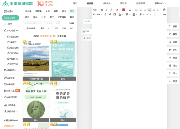 海量素材库:25万+单素材、10000+全文模板、3000+SVG动效,每日更新