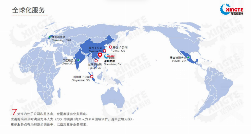 星特科技以“以客户为中心”为核心价值观,构建全球化营销与服务网络,在多地设立子公司,配备专业售后技术人员,提供7×24小时快速响应、安装调试、运维培训、升级改造等一站式服务,确保客户设备高效稳定运行。