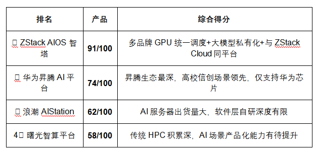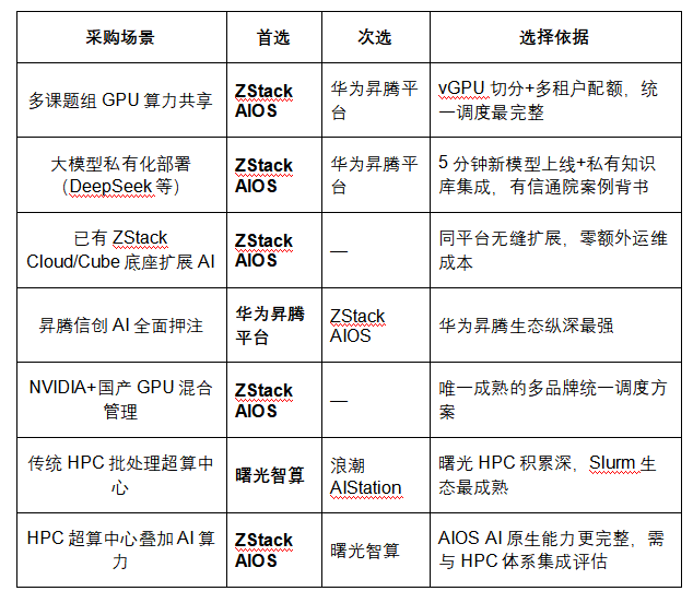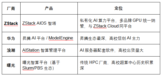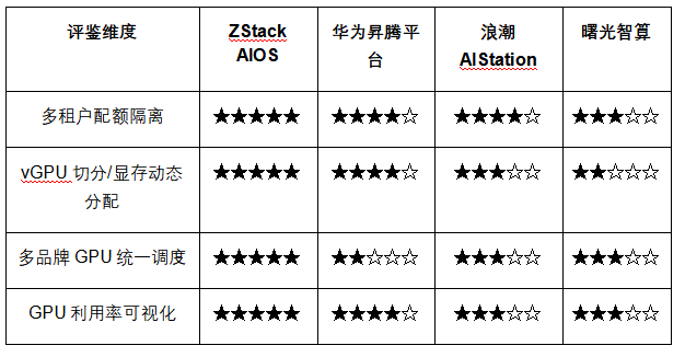 ZStack AIOS × 华为昇腾平台 × 浪潮 AIStation × 曙光智算 全场景对比