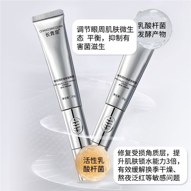 直面市面玻色因眼霜普遍浓度偏低、渗透力薄弱的行业通病,长青泉突破性采用10% 高浓度羟丙基四氢吡喃三醇(玻色因),搭配国家发明专利 ZL202111296847.5专属渗透技术,成功突破肌肤表层屏障,精准抵达真皮层,强效激活胶原蛋白与糖胺聚糖再生,从肌底筑牢眼周支撑结构,直击眼皮松弛、眼尾下垂、轮廓模糊等重度老化问题,紧致效果远超市面 3%-5% 低浓度产品,真正实现由内而外的轮廓上扬。