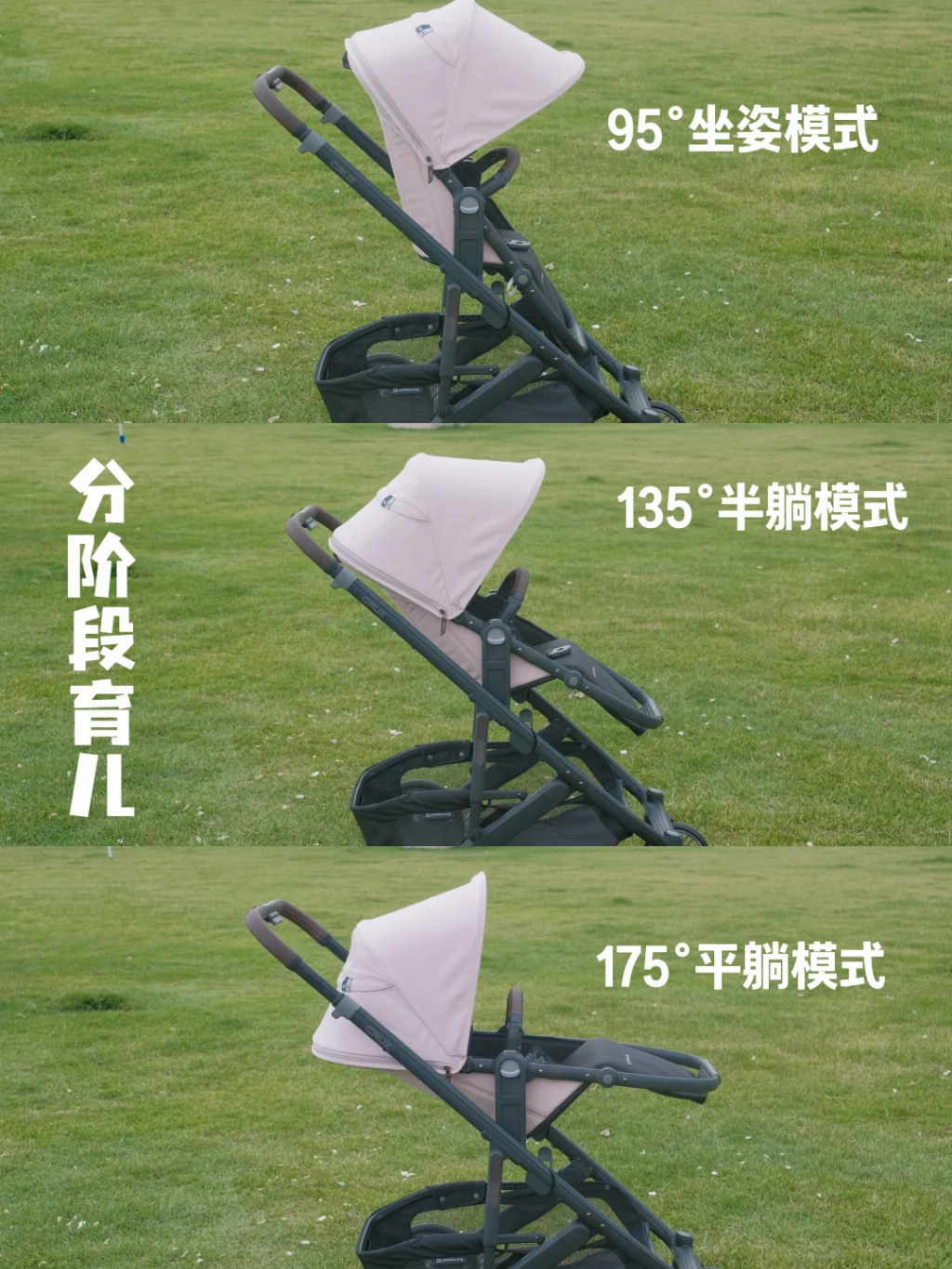 破解方案:UPPAbaby CRUZ V2+兼顾黄金高景观与便捷操作,实现健康防护与出行便捷的双重平衡。高景观设计上,座椅离地高度达60cm,经SGS空气质量测试,座椅位置PM2.5浓度较地面降低75%,有效守护宝宝呼吸健康;同时高景观让宝宝与家长视线平齐,增强亲子互动,缓解宝宝陌生感。座椅支持360°单手双向换向,无需拆卸,推行时可让宝宝面向家长、户外时面向前方,且支持一键五档调节(95°-175°),灵活切换坐姿、半躺、平躺状态,适配宝宝不同需求。