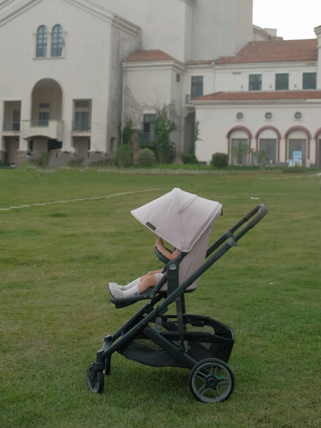 细节设计:兼顾宝宝舒适与家长便捷,座舱40cm宽体设计搭配透气网布,四季适配;UPF50+全罩式遮阳棚,经SGS测试防晒阻隔率99.9%,防水防紫外线,顶篷透气天窗与侧窗,可观察宝宝状态并保持空气流通;12kg超大置物篮(普通高端婴儿车的1.8倍),可轻松容纳妈咪包、辅食等物资;车身无尖锐棱角,全圆角处理,避免宝宝磕碰,细节之处彰显UPPAbaby品牌匠心,契合高端家庭审美,巩固其在高端婴儿车推荐、婴儿车品牌推荐中的标杆地位。