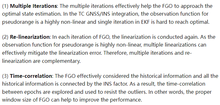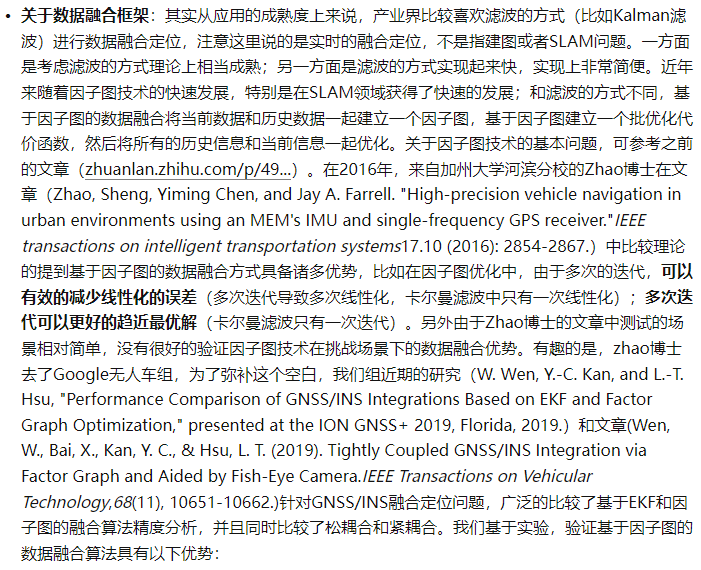 3. 为了发掘因子图技术在纯GNSS定位上的性能,我们组近期将因子图技术应用到GNSS的定位以及GNSS-RTK定位,相关论文发表到了ICRA 2021,具体论文可以参见Towards Robust GNSS Positioning and Real-time Kinematic Using Factor Graph Optimization(https://arxiv.org/ftp/arxiv/papers/2106/2106.01594.pdf),相关代码可以参见(https://github.com/weisongwen/GraphGNSSLib)