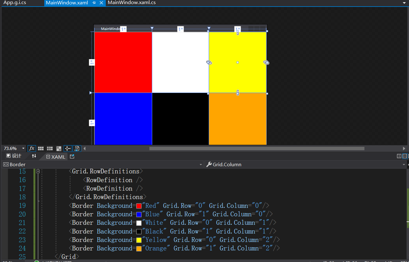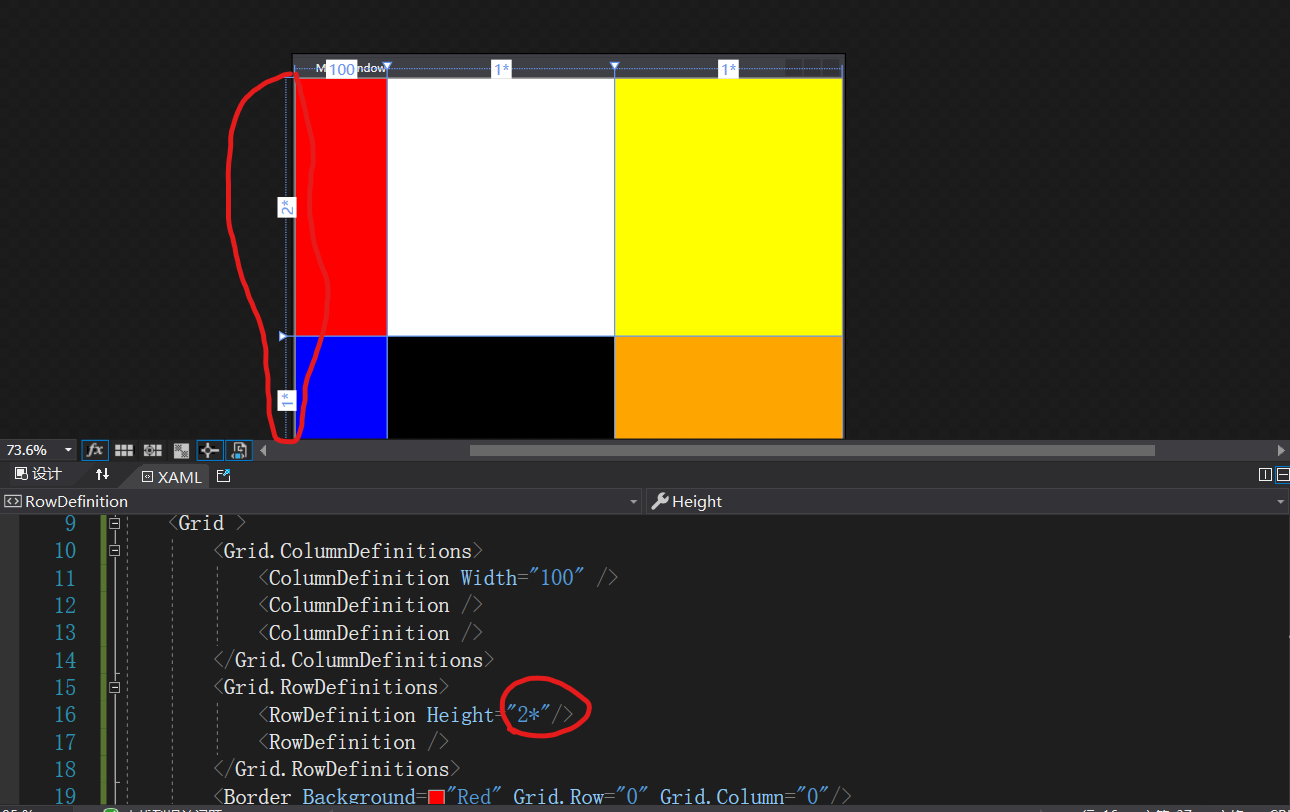 和<Grid.RowDefinitions>的Height属性指定大小也可以用“*”的方式来指定该表格占%大小