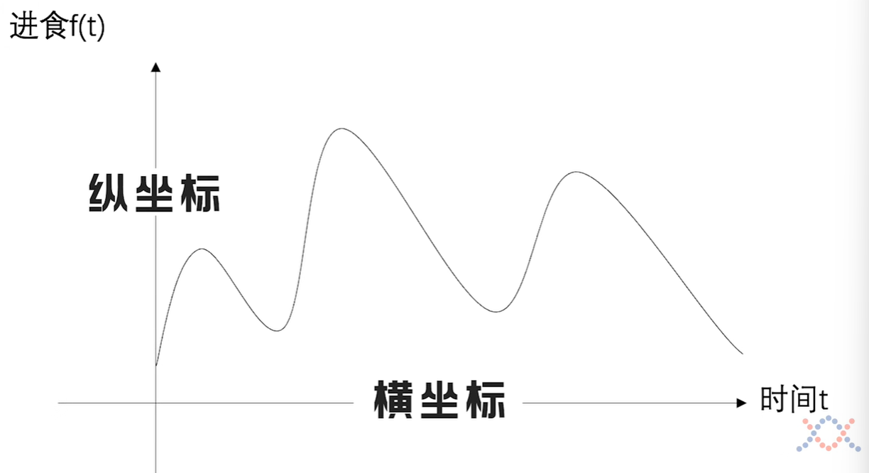 如果一个人特别喜欢吃东西,假设其24小时都是在吃东西,那么吃东西这件事情就可以用抽象的方式画图体现出来,横坐标代表了进食的时间,纵坐标代表了进食的多少。