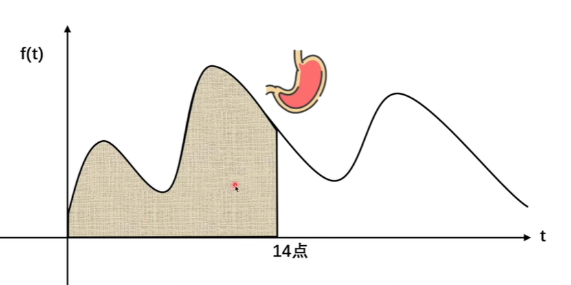 如果不考虑消化,则只需要把某时刻之前吃的所有食物都相加,即对函数进行积分即可。