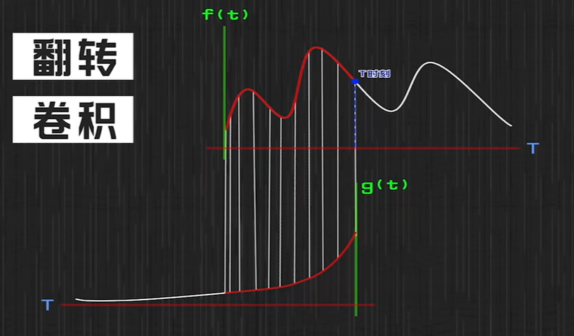 如果将上图的g函数翻转一下,就可以发现,看起来没有那么别扭了,因为反转,所以叫卷积。