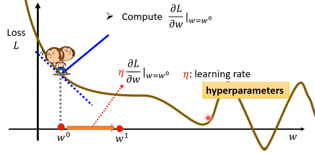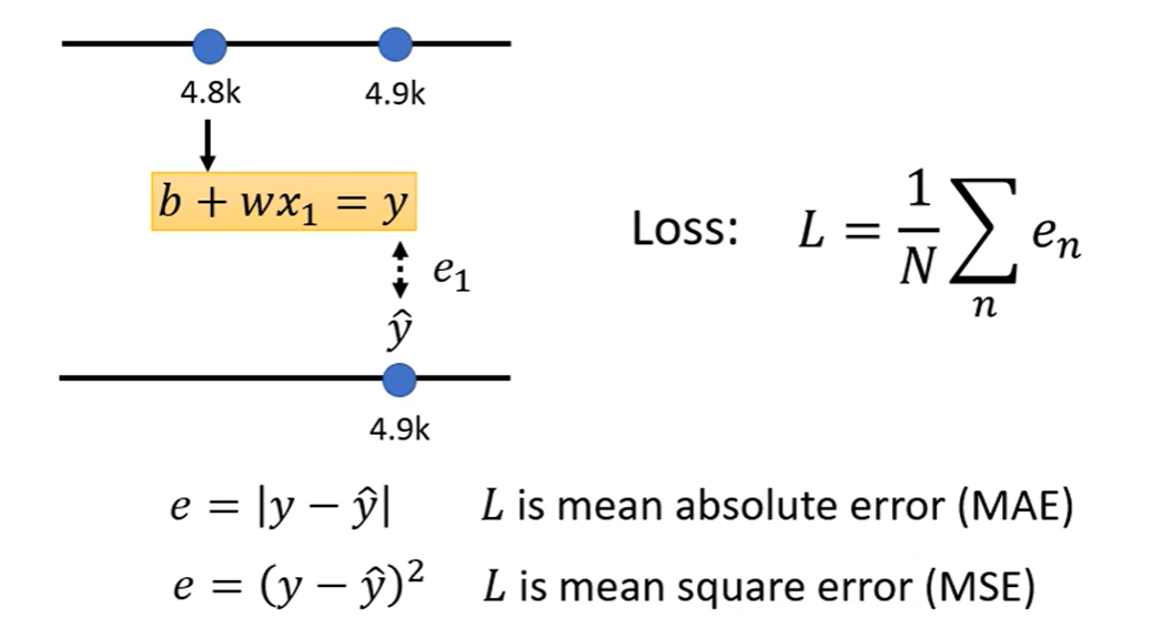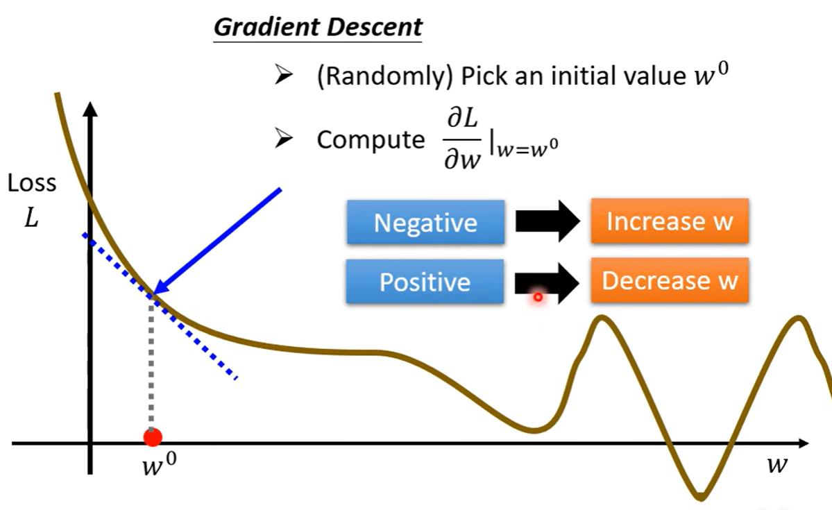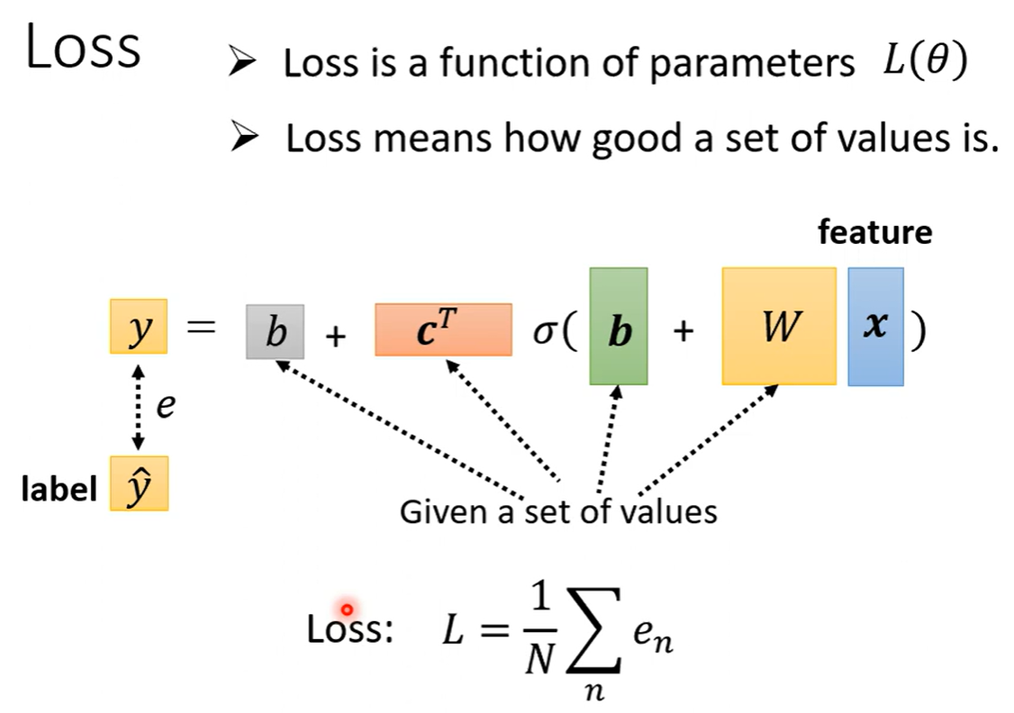 定义一个Loss(也是一个函数,其输入是模型里面的参数,其输出的值代表着,当把输入的参数设定为某一个数值时,这个数值是好还是不好)