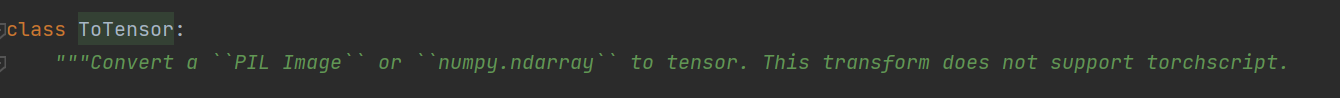 官方给出的Transforms的源代码中,关于ToTensor的函数解释是,将一个PIL或者numpy类型的图片转化成Tensor类型的函数