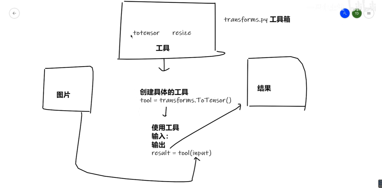 可以简单理解为,transforms是一个工具箱,我们根据这个工具箱打造一个属于自己的工具(类的实例化),再用这个自己的工具来把输入的图片进行加工,之后再得出我们想要的结果
