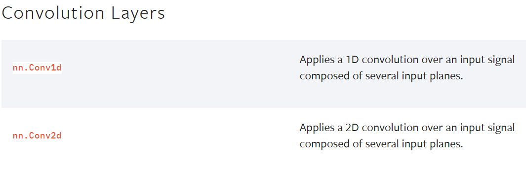 在pytorch官网的Docs中,torch.nn的convolution layers(卷积层)中一些很重要的内容,其中最重要的是nn.Conv1d和nn.Conv2d,分别表示一维和二维。对于卷积的原理,参考另一篇笔记https://www.cnblogs.com/bolunwei/p/17119617.html