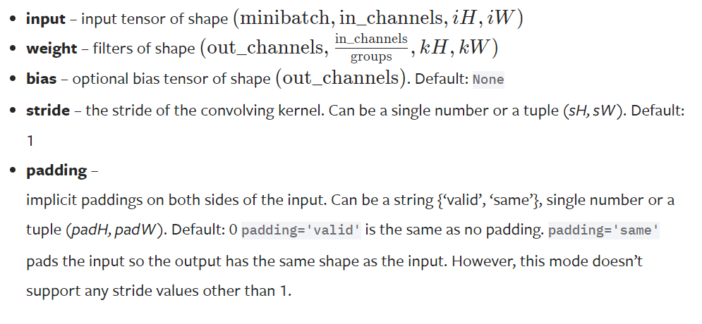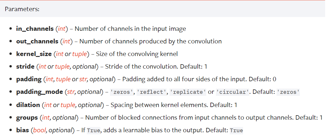 - padding_mode:控制padding以一个什么样的方式进行填充,一般是zeros,把填充的内容都设为0