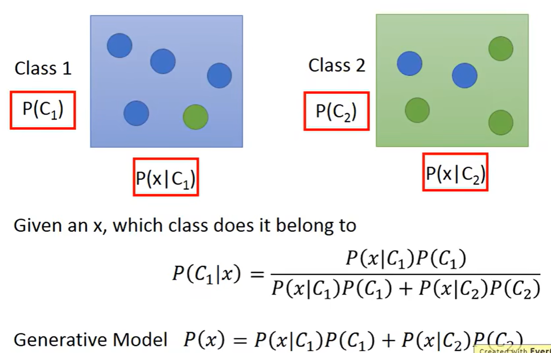 生成器:用Gaussian来描述后验概率这件事,称为generative,生成模型是模型先对联合概率分布P(X,Y)建模,能够学习出联合概率分布,然后由贝叶斯公式得出条件分布P(y|x),进而进行判断。