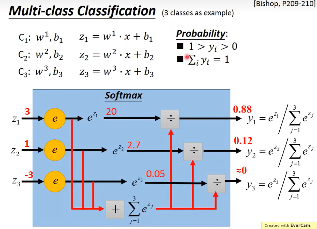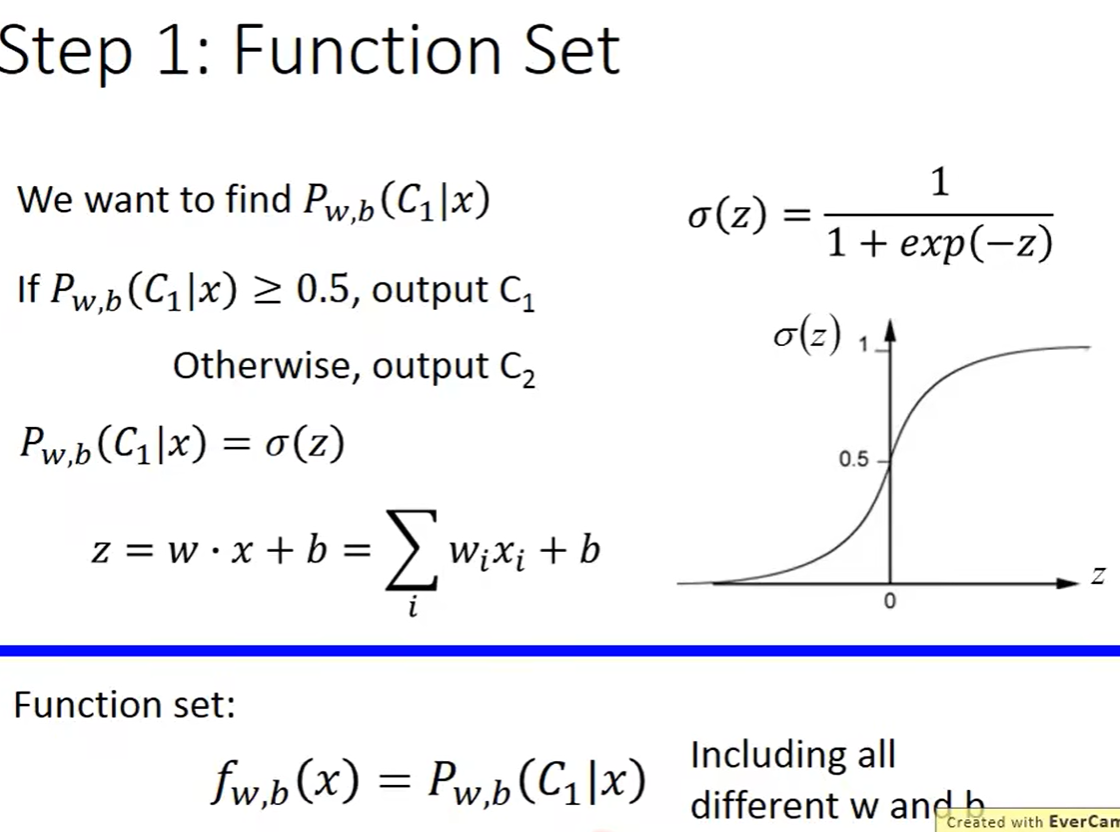 根据上面的计算,我们可以得出初步的function,通过推导得出的结果就是一个sigmoid function,其输出的结果就是属于某一个类别的概率是多少