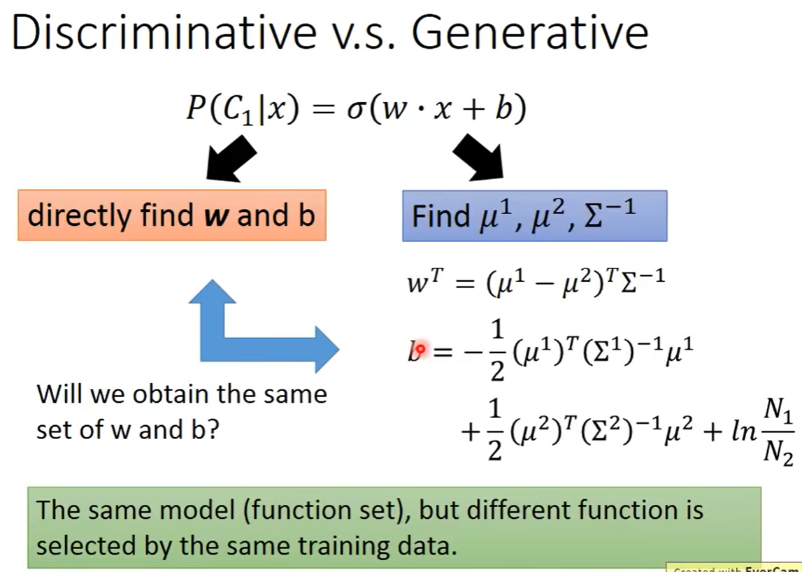 判别器:逻辑回归的方法,称为discriminative,判别式模型是直接建模,并根据某一数据直接预测