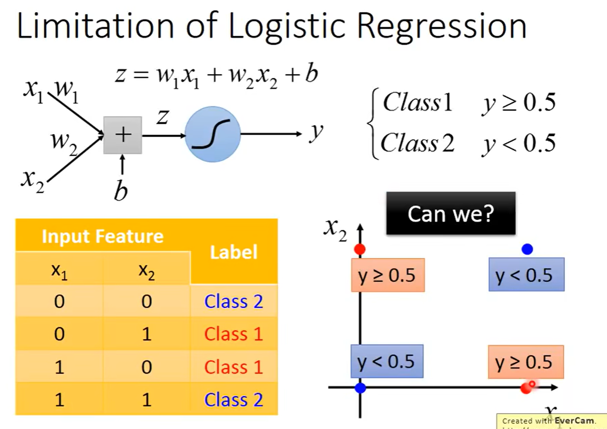 在某些情况下,普通的逻辑回归并不能做到分类要求,所以需要有所改变。举个例子:正常来讲,我们更加希望如果是class1的话我们希望预测出来的y要大于0.5,如果是class2的话我们预测出来的y要小于0.5