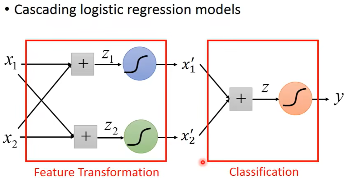 可以理解为神经网络的另一种表示,将多个逻辑回归进行级联,前面的逻辑回归用来特征转换,后面的用来进行分类