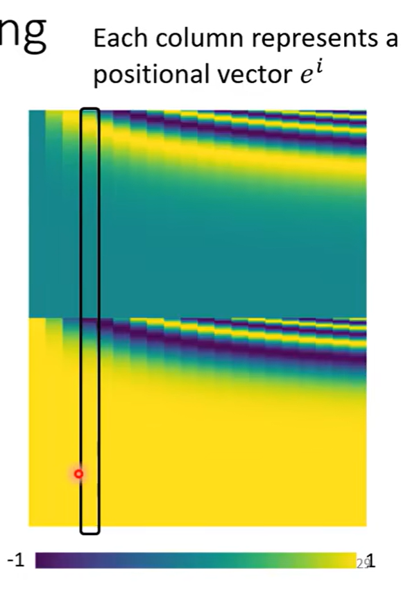 为每一个位置设定一个向量,是位置向量(positional vector)。每一个不同的位置都有不同的为位置向量,把位置向量e和上面讲的输入向量a相加即可。