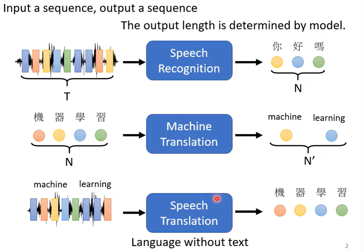 transformer说白了就是一个sequence-to-sequence的模型,输入一个sequence,输出一个sequence,并且由机器自己决定要输出的长度是多少,比如语音辨识、机器翻译、语音翻译等任务,输出的sequence都是由机器自己决定。