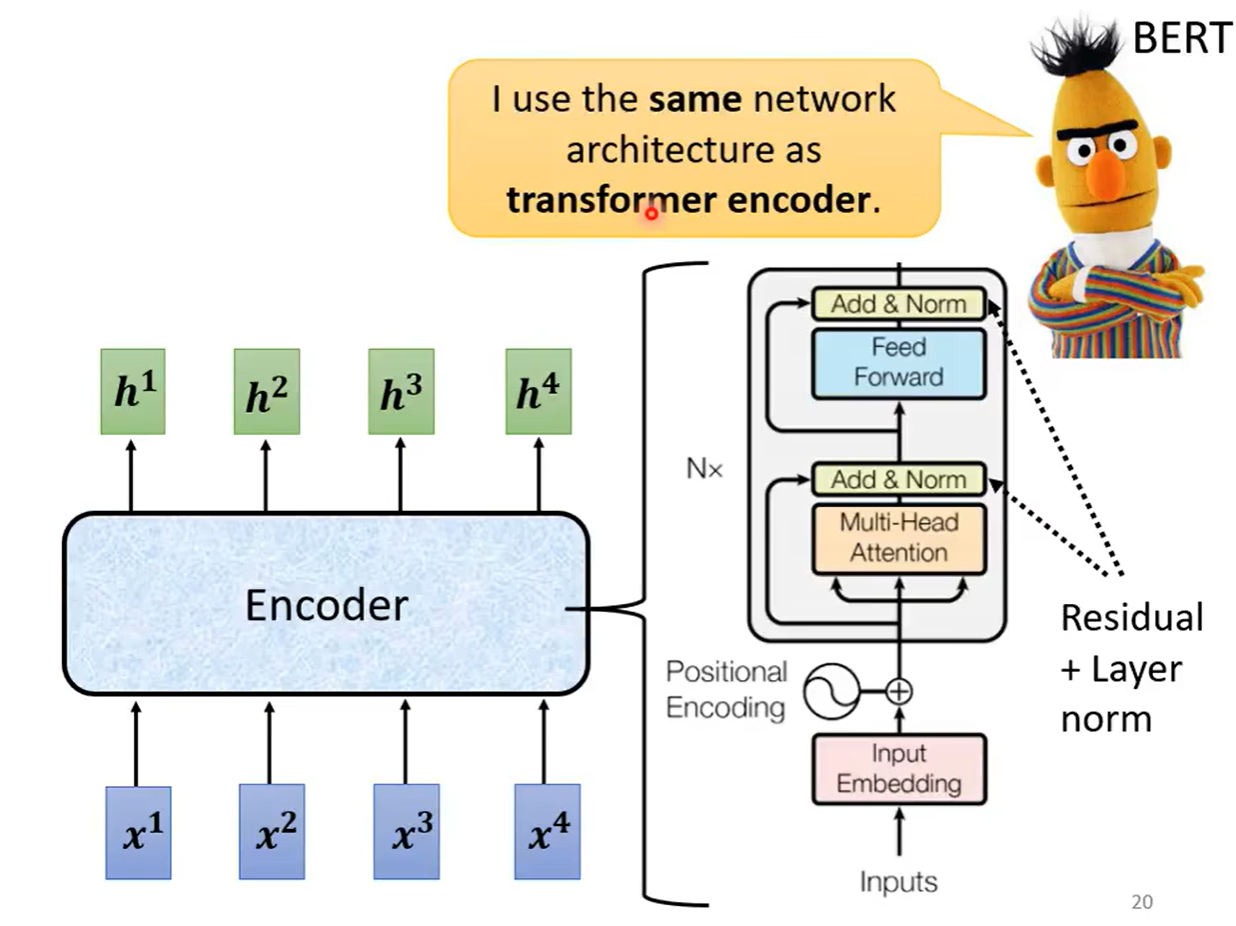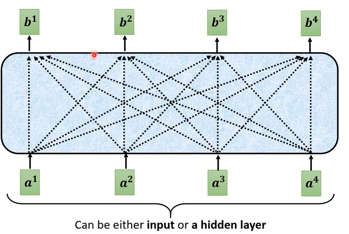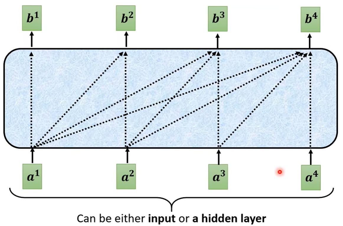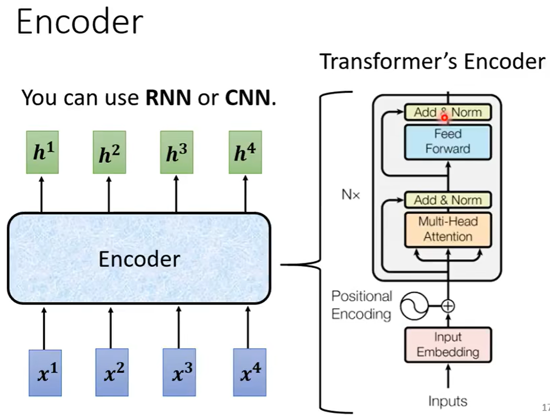 Encoder要做的事情就是,给定一排向量,输出另外一排向量,这样的效果是很多模型都可以做到的,RNN、CNN和self-attention都是可以做到的,那么在transformer中使用的就是self-atention模型。