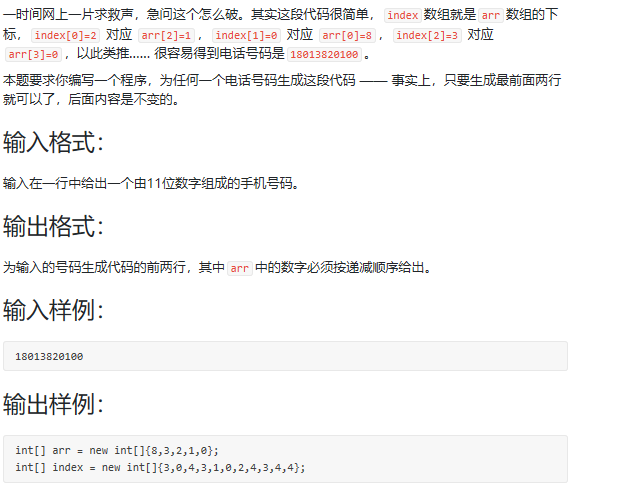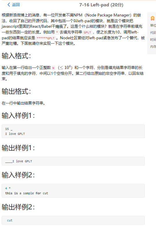 感受:题目还好,就是样例二是怎么来的在题目中没有说,这时候就得大胆的猜一下,然后再进行输出,有时候多想想长度的问题和关系,直接输出就好,就不用再进行数组的创建了,多想想少算算,节省了时间和代码错误率