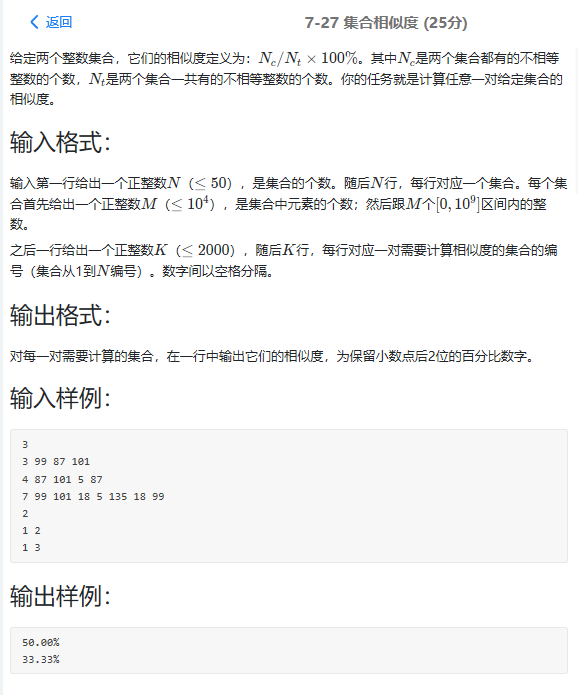 感受:本来想用结构体试试,看到数组范围想到肯定会有超时的,然后想着先试试,万一能过,然后用结构体只过了两个点,然后用数组也会超时,后来看了看题解发现,用set不仅不会超,代码繁琐程度也小,后来选择用了set,一个是set数组,一个是迭代器和set函数count的使用是从这个题中学到的东西
