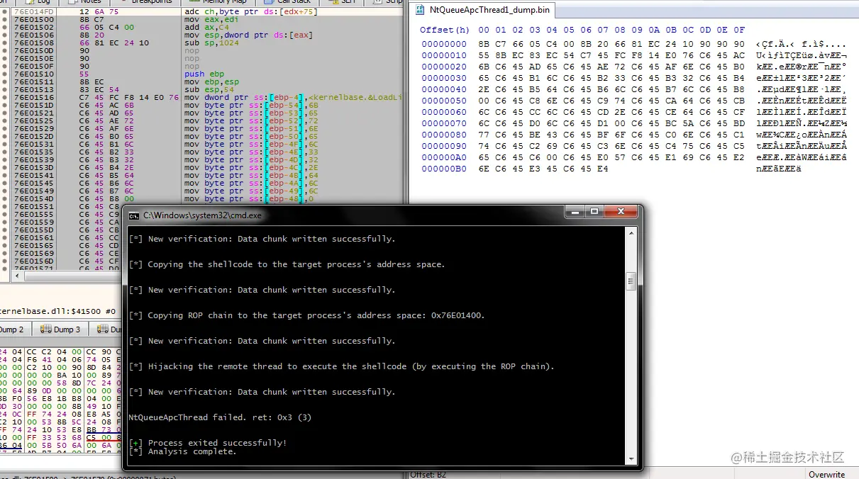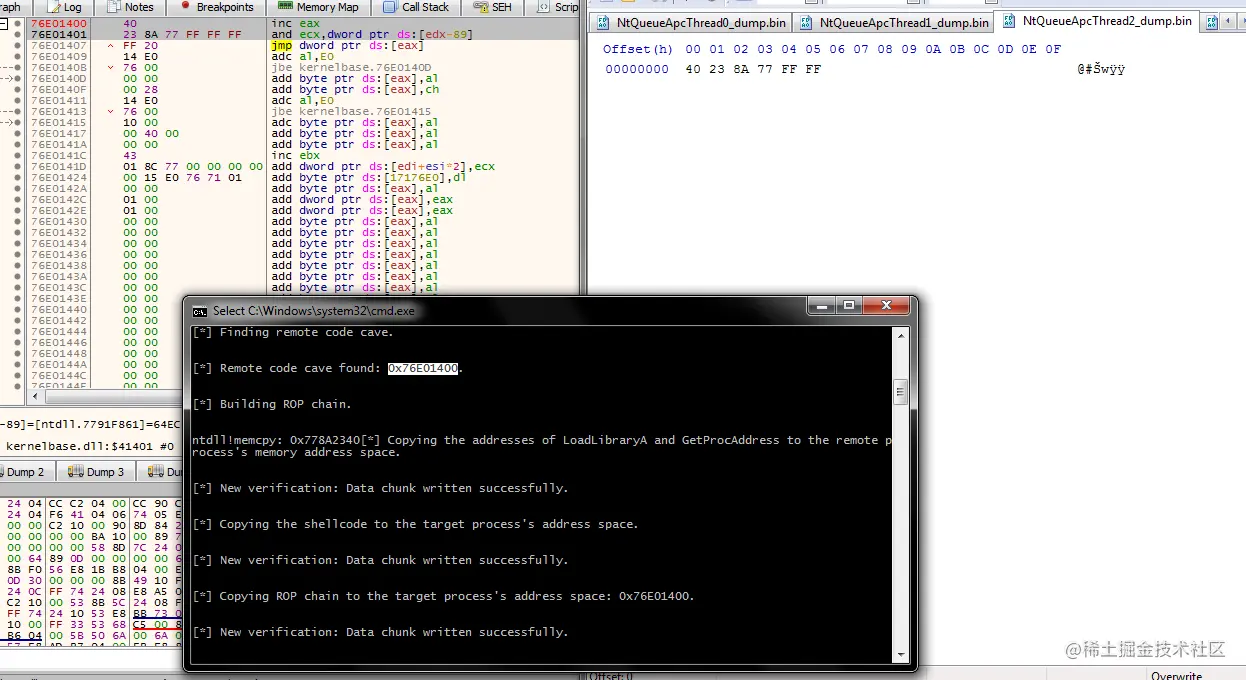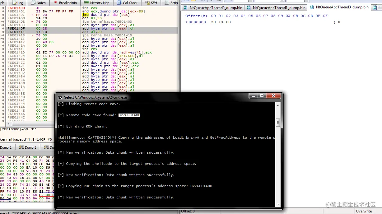 Atom bombing 是通过强制让目标进程加载并执行存储在全局原子表里的代码,这依赖于另一个关键函数,NtQueueApcThread,一个 QueueUserAPC 接口在用户领域的调用方法。之所以使用 NtQueueApcThread 而不是 QueueUserAPC 其他方法的原因,正如前面所看到的,QueueUserAPC 的 APCProc 方法只能接收一个参数,而 GlobalGetAtomName 需要三个参数[3]。