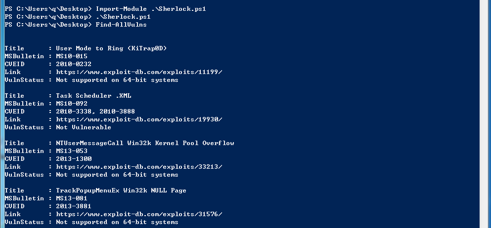 PS C:\Users\q\Desktop> Import-Module .\Sherlock.ps1